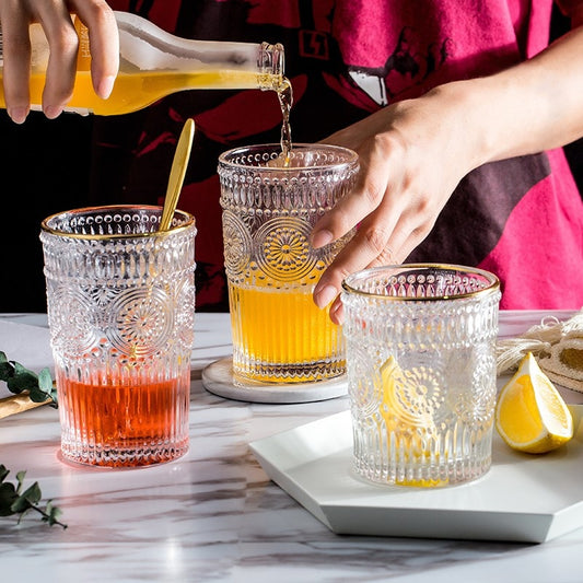 Sun Flower Embossed Vintage Drinking Glass