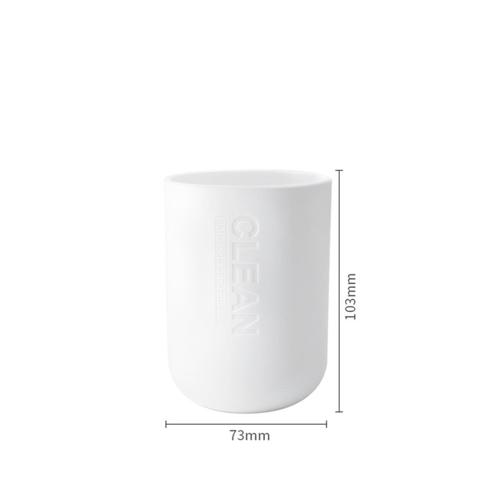 - Our natural-inspired accessories included a soap dish, mouthwash cup, toothbrush holder, and lotion or soap dispenser.