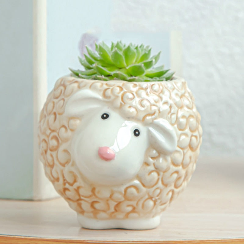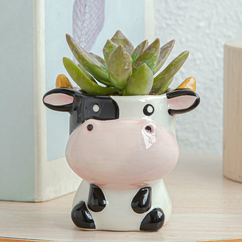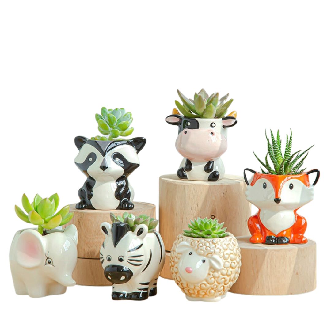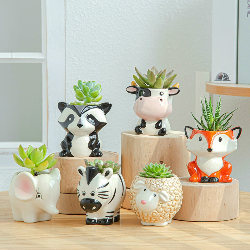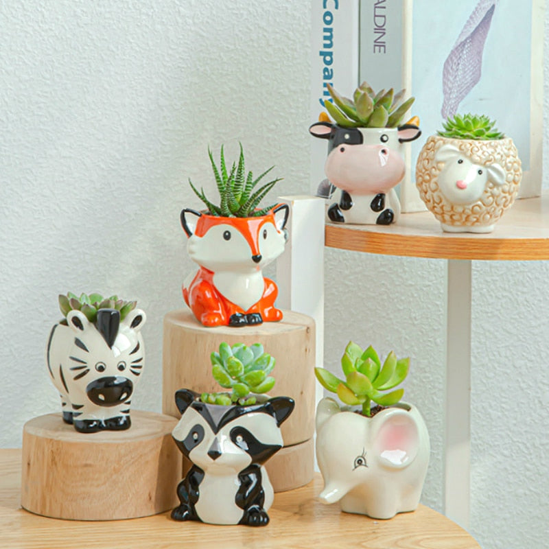 Make a statement with these glazed ceramic flower pots. Featuring an adorable animal design, this indoor planter is perfect for adding life and cheer to your home or office. Perfect for succulents and other small plants.