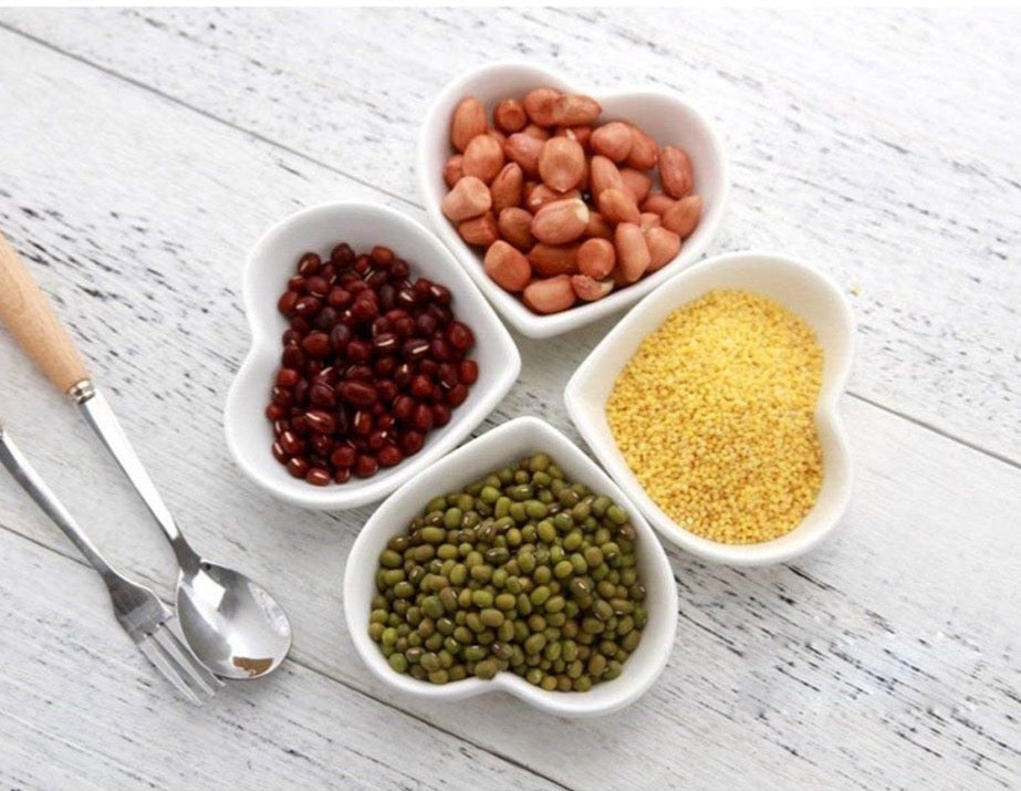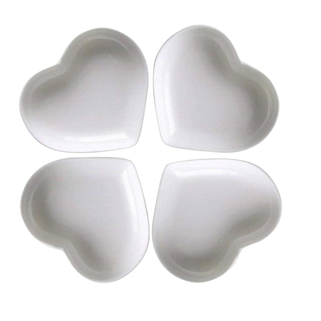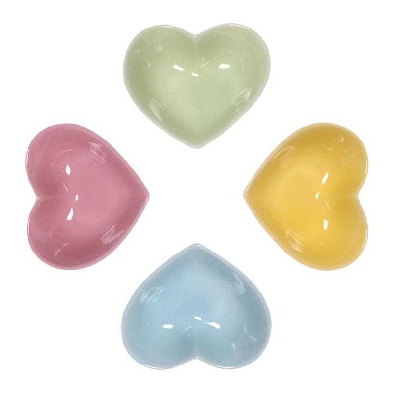 This 4-piece set features glazed ceramic formed into an adorable mini heart ❤️ shaped nesting saucers, choose from all white or multi-colored. Measuring approximately 3 inches wide, this set is perfect for serving small snacks & salads, also creating displays with grazing tables & charcuterie boards. This sleek and stylish design adds a modern touch of fun to your meals and snacks.